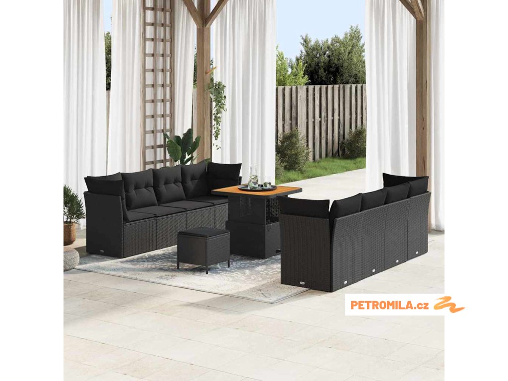 Sada zahradních pohovek s polštářem s úložištěm 11 pcs Černá