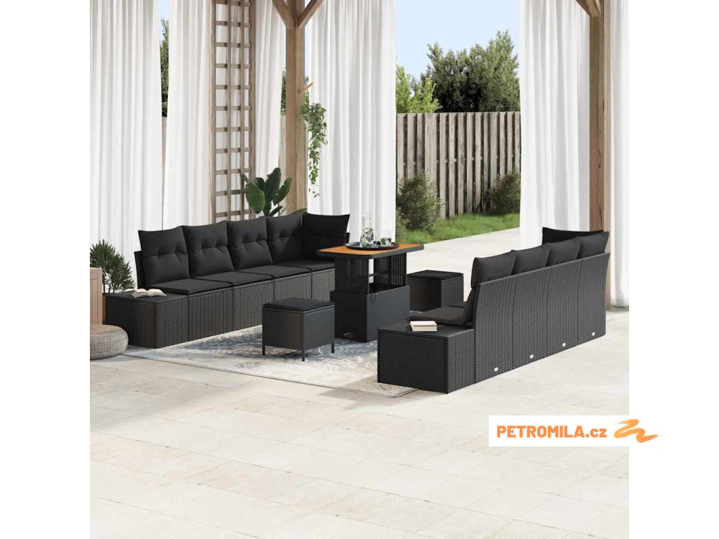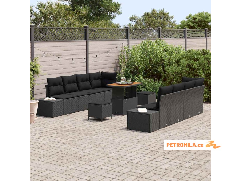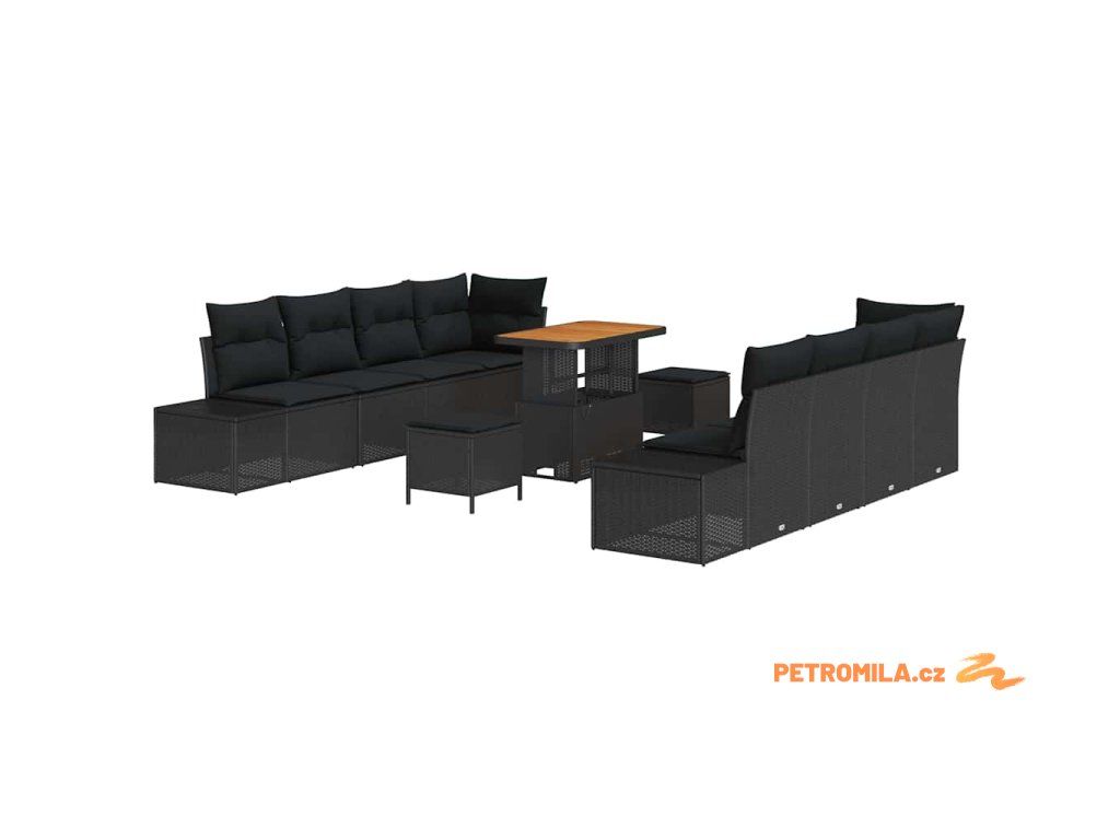Sada zahradních pohovek s polštářem s úložištěm 11 pcs Černá