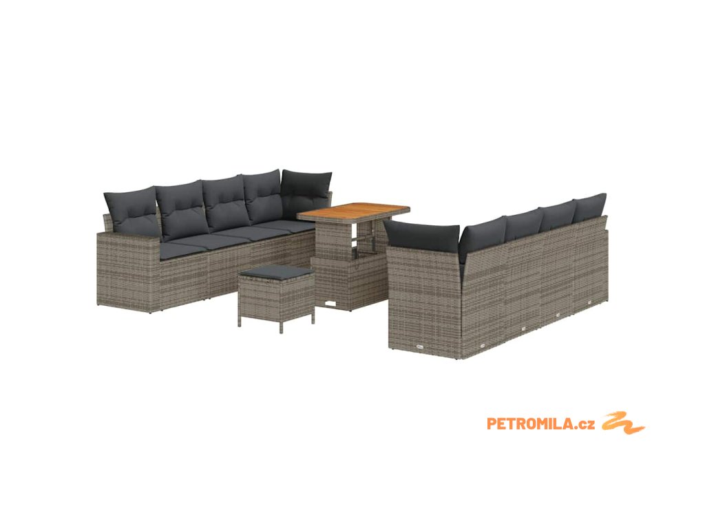 Sada zahradních pohovek s polštářem s úložištěm 11 pcs Šedá