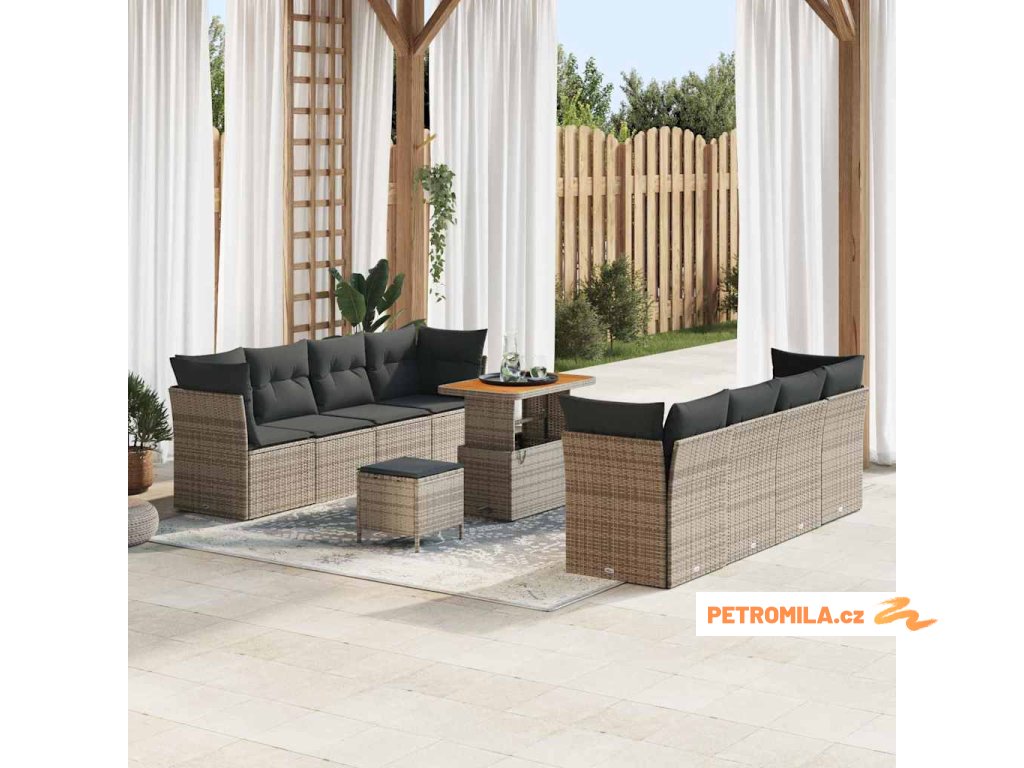 Sada zahradních pohovek s polštářem s úložištěm 11 pcs Šedá
