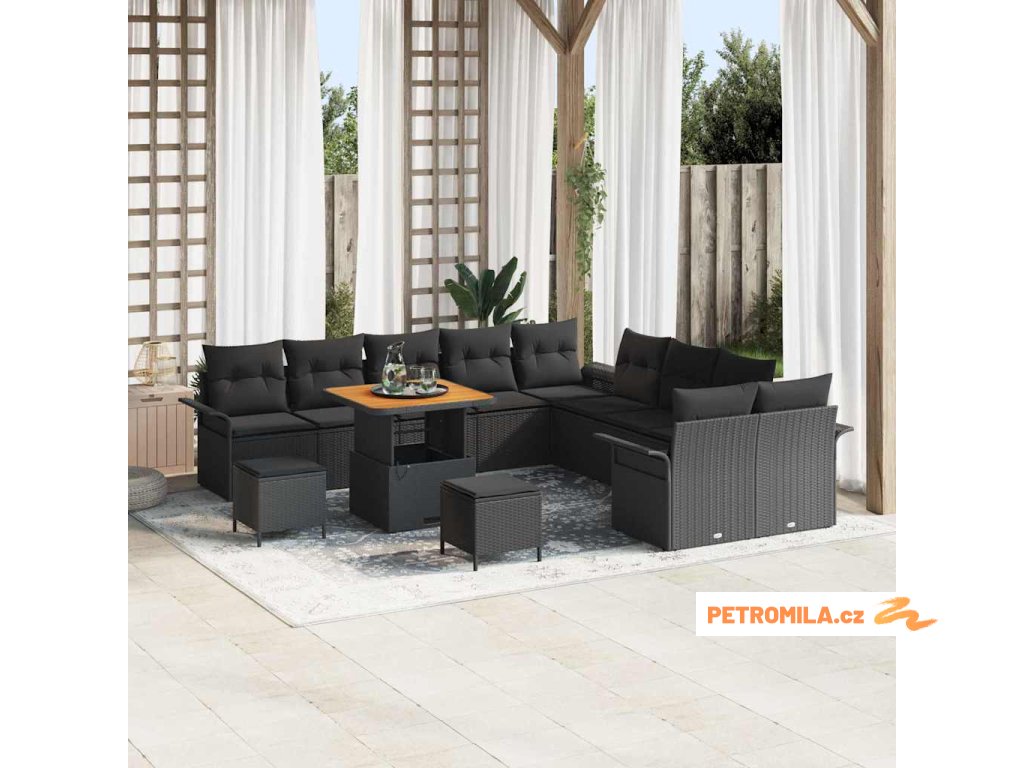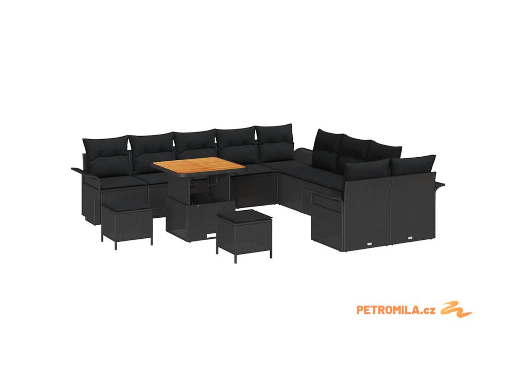 Sada zahradních pohovek s polštářem s úložištěm 13 pcs Černá