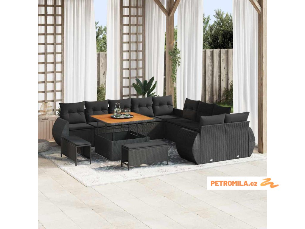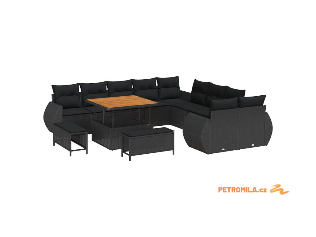 Sada zahradních pohovek s polštářem s úložištěm 13 pcs Černá