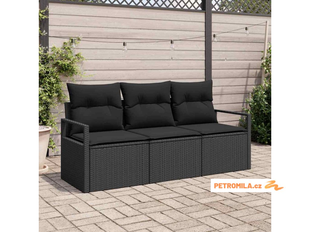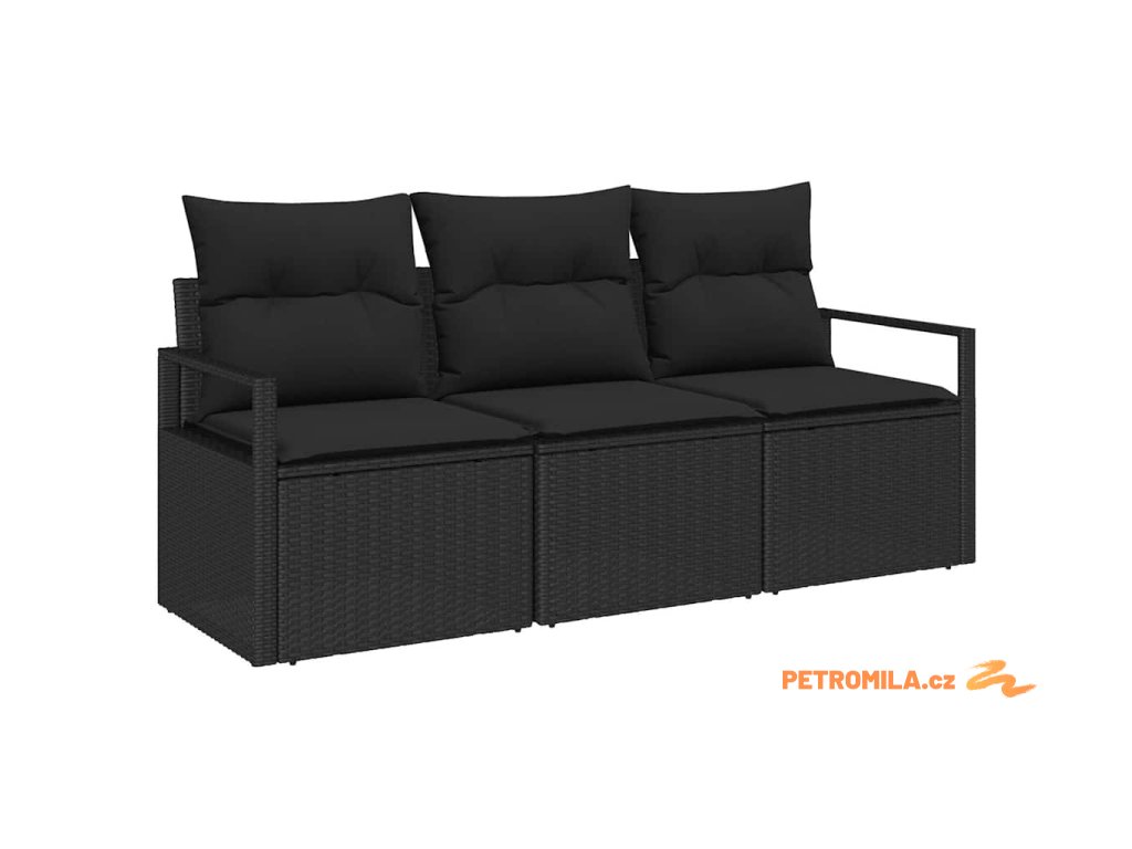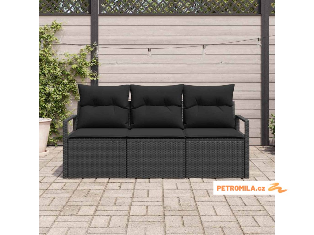 Sada zahradních pohovek s polštářem s úložištěm 3 pcs Černá