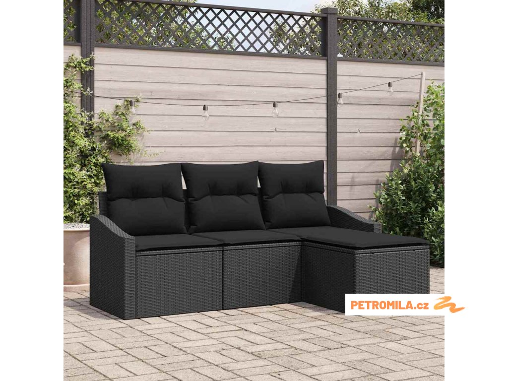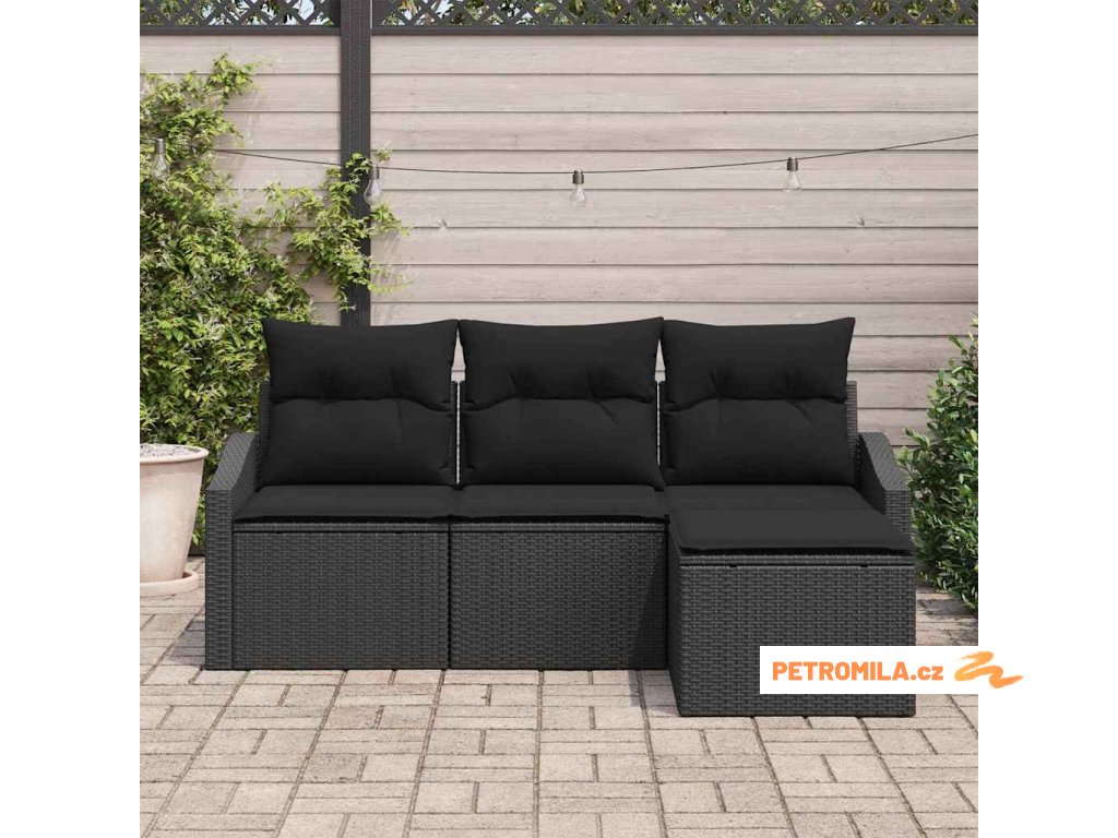 Sada zahradních pohovek s polštářem s úložištěm 4 pcs Černá