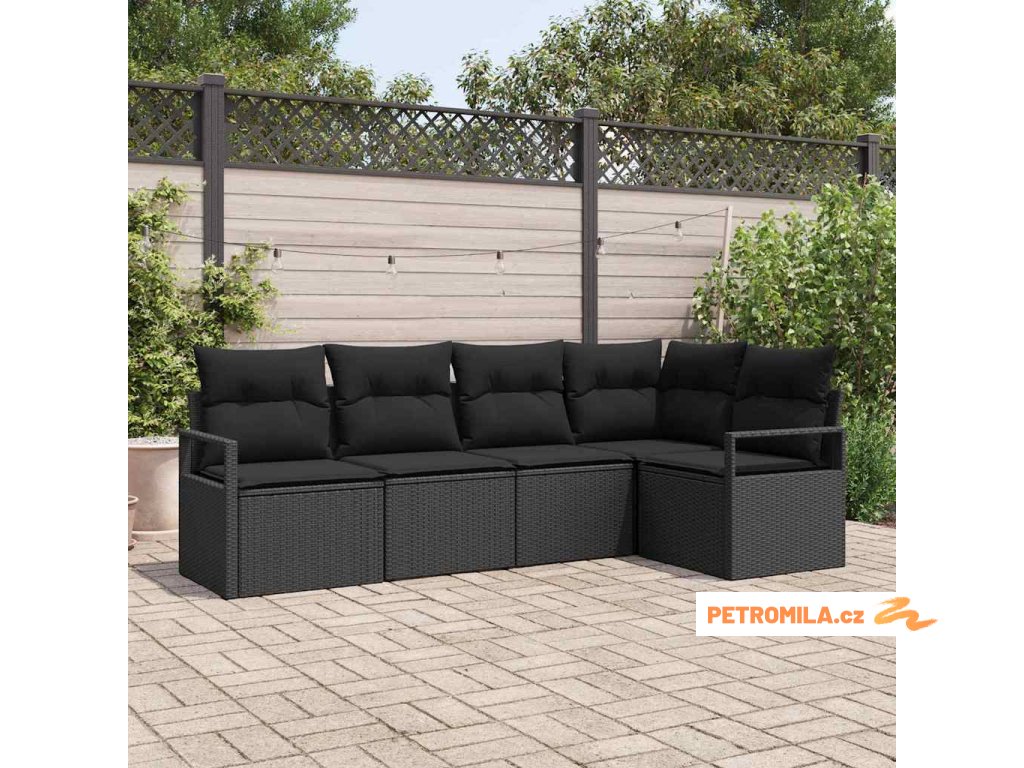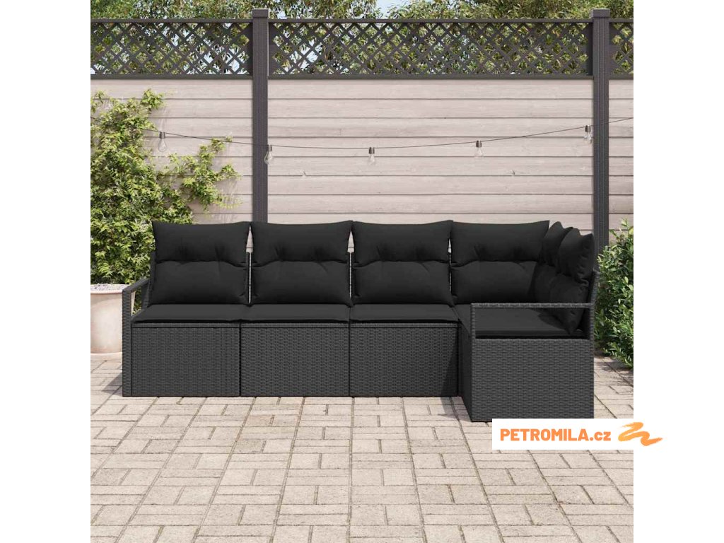 Sada zahradních pohovek s polštářem s úložištěm 5 pcs Černá