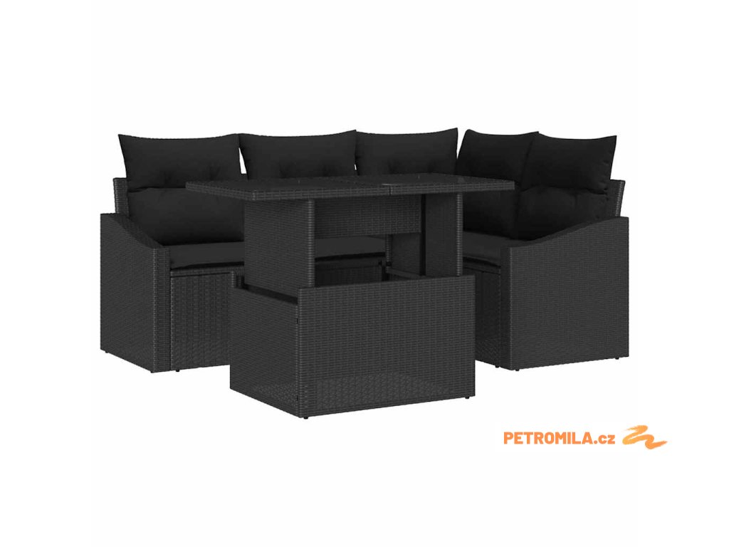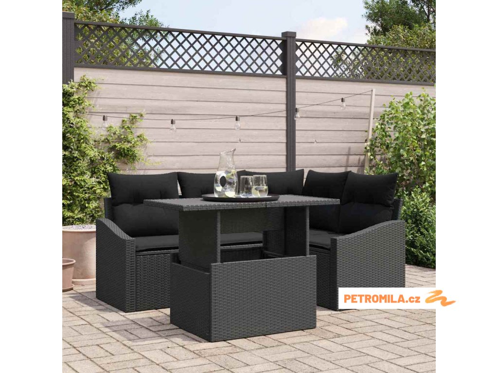 Sada zahradních pohovek s polštářem s úložištěm 5 pcs Černá