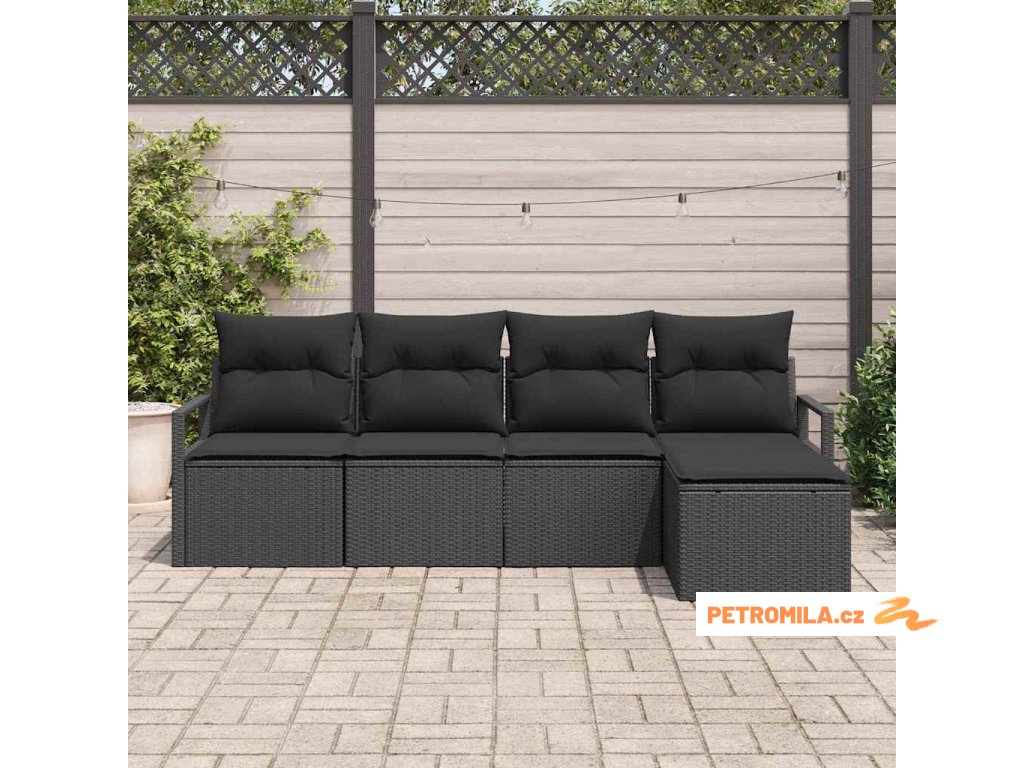 Sada zahradních pohovek s polštářem s úložištěm 5 pcs Černá