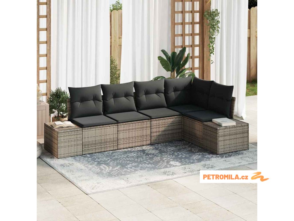 Sada zahradních pohovek s polštářem s úložištěm 5 pcs Šedá