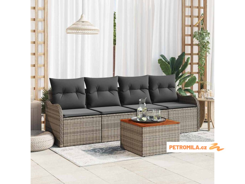 - Robustní materiál: Tato sada zahradního gauče je vyrobena z poly ratanu, oceli a masivního akáciového dřeva, což zajišťuje solidní základ. Odolný poly ratan snese slunce a slibuje dlouhou životnost i v horkých dnech. Rám z práškově lakované oceli přidává stabilitu a elegantní vzhled. A akáciové dřevo dodává přírodní nádech, který se skvěle hodí do venkovního prostředí.