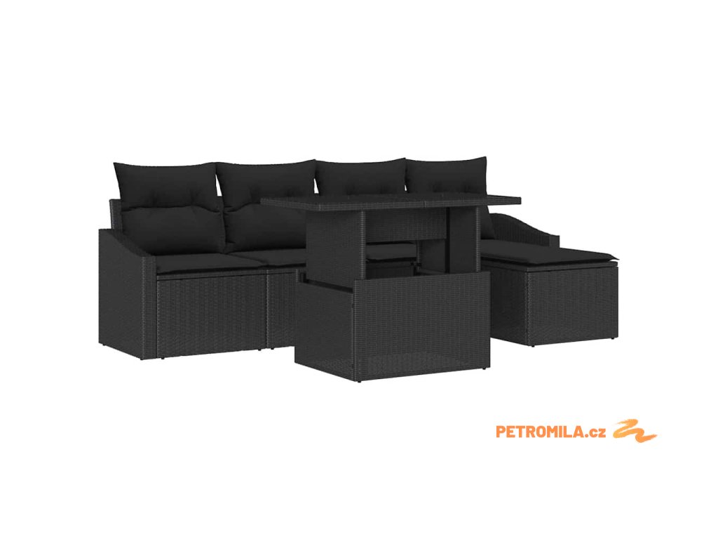 Sada zahradních pohovek s polštářem s úložištěm 6 pcs Černá
