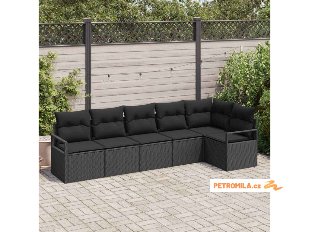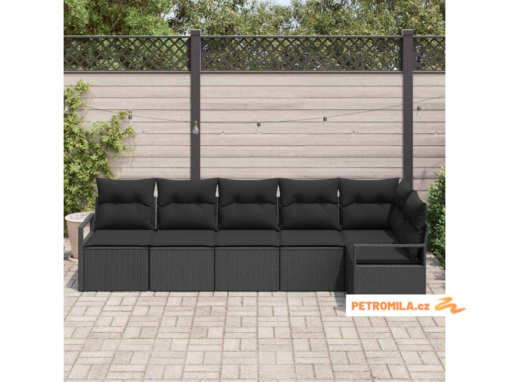Sada zahradních pohovek s polštářem s úložištěm 6 pcs Černá
