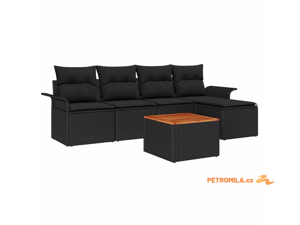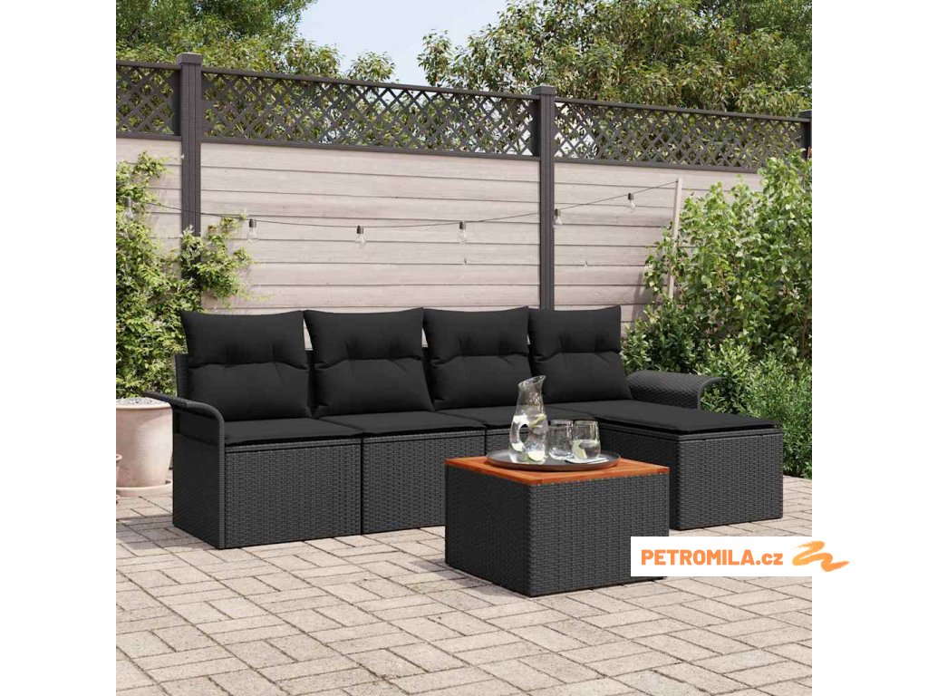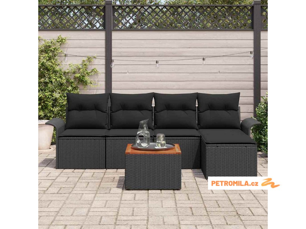 Sada zahradních pohovek s polštářem s úložištěm 6 pcs Černá