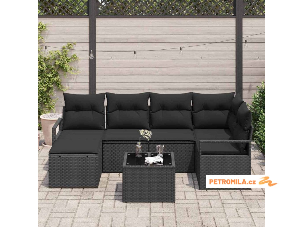 Sada zahradních pohovek s polštářem s úložištěm 7 pcs Černá