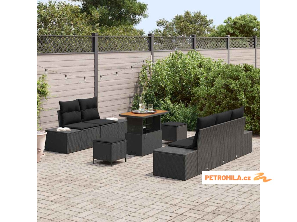 Sada zahradních pohovek s polštářem s úložištěm 8 pcs Černá