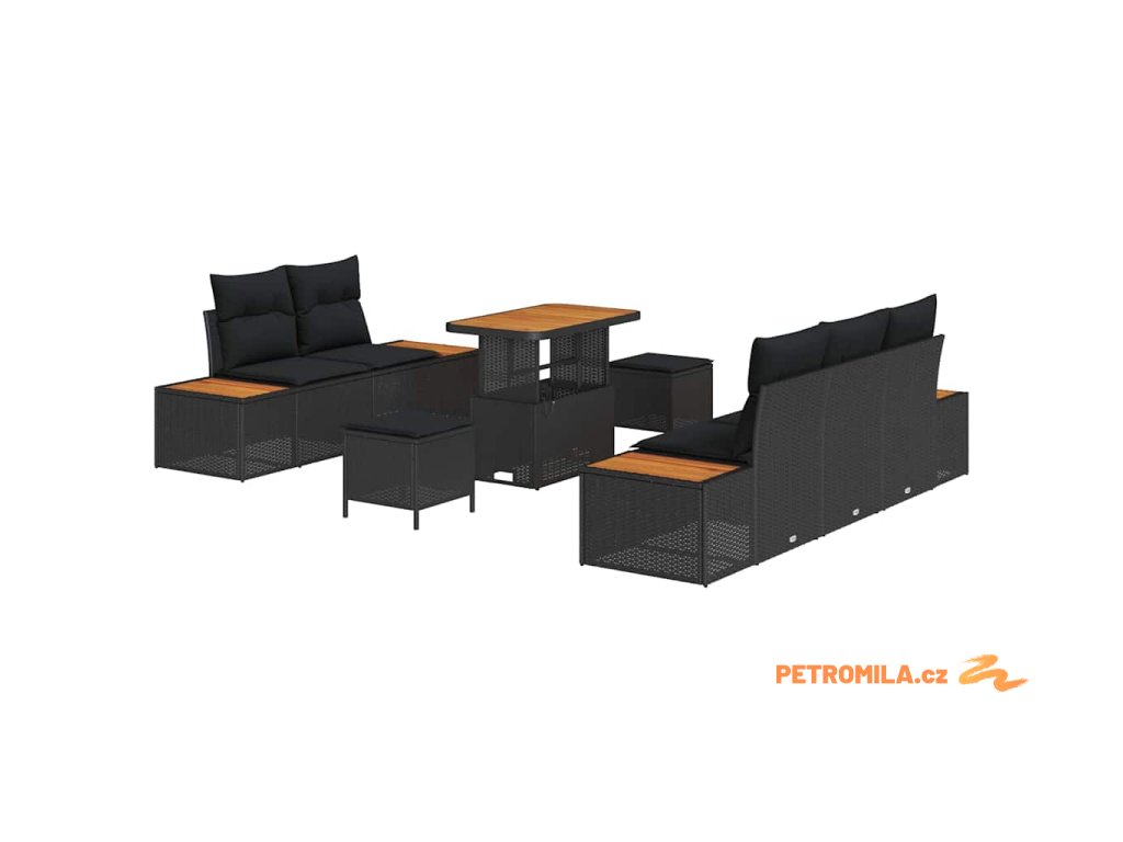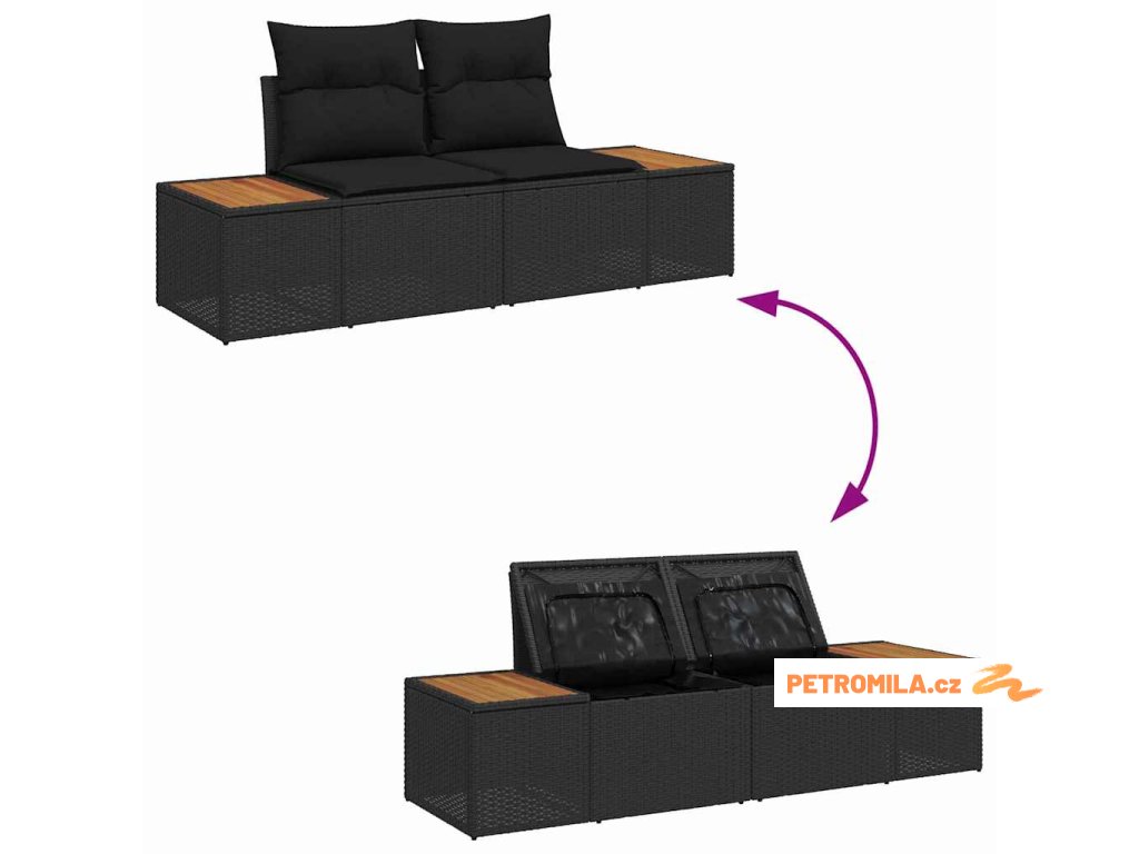 Sada zahradních pohovek s polštářem s úložištěm 8 pcs Černá