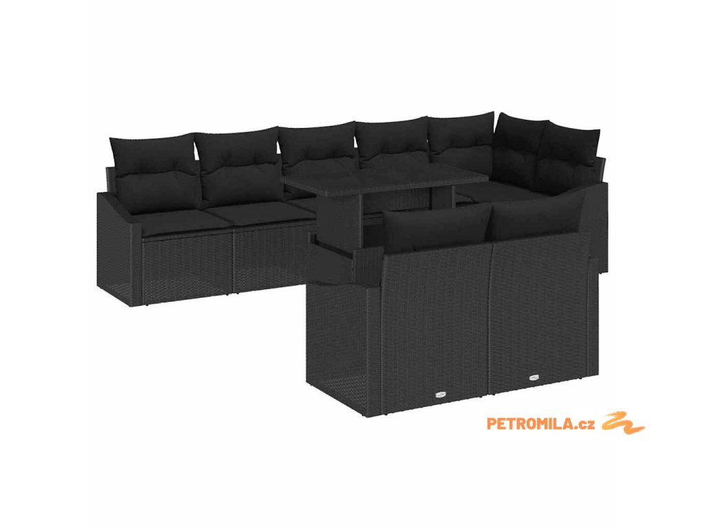 Sada zahradních pohovek s polštářem s úložištěm 9 pcs Černá