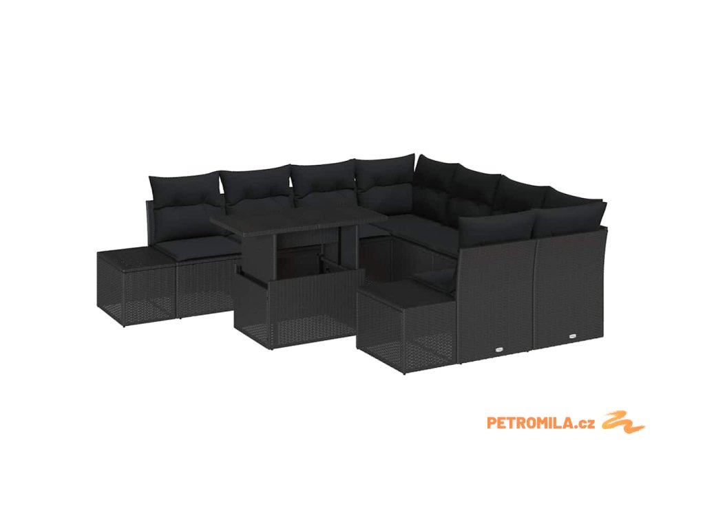Sada zahradních pohovek s polštářem s úložištěm 9 pcs Černá