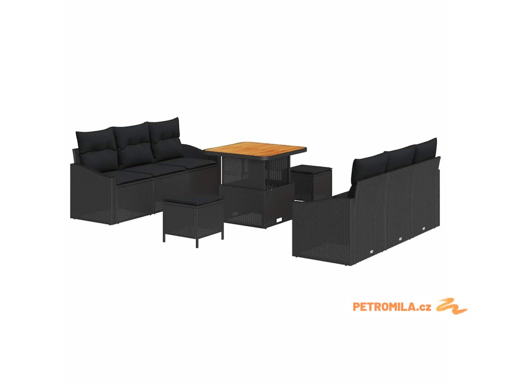 Sada zahradních pohovek s polštářem s úložištěm 9 pcs Černá