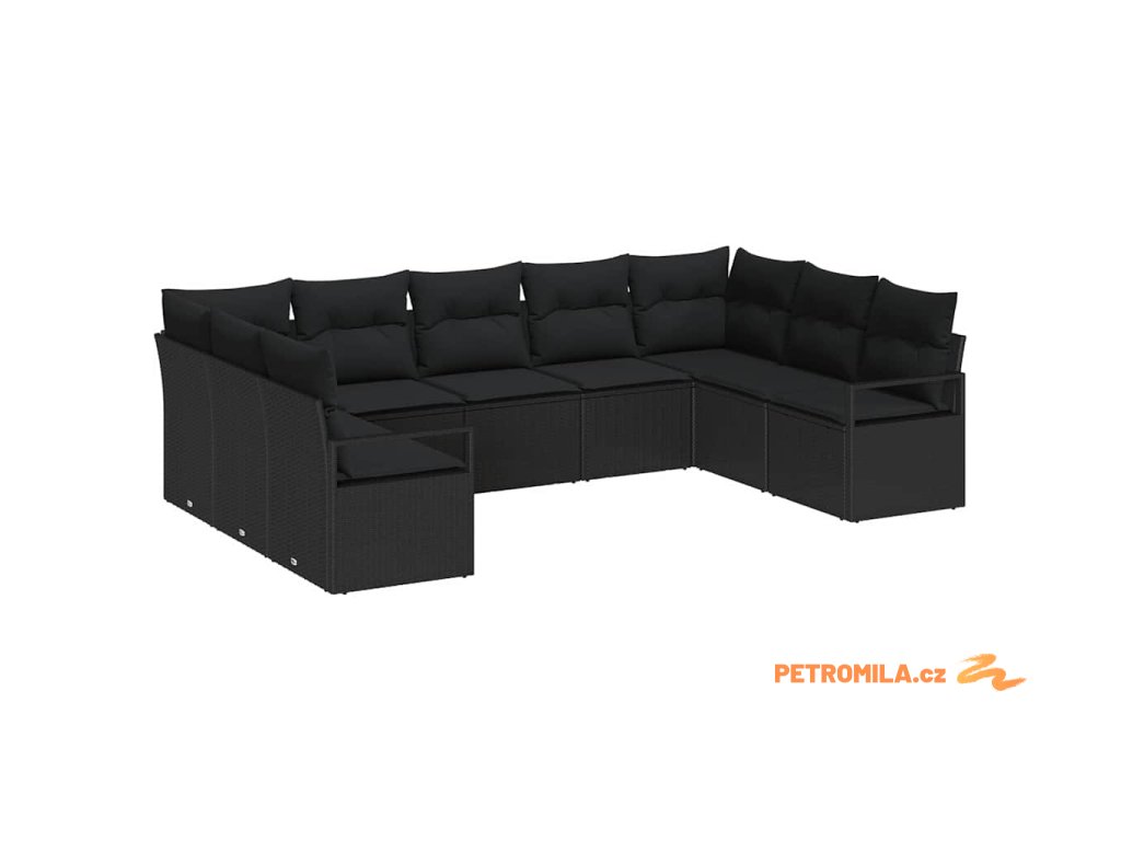 Sada zahradních pohovek s polštářem s úložištěm 9 pcs Černá