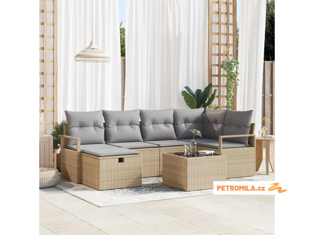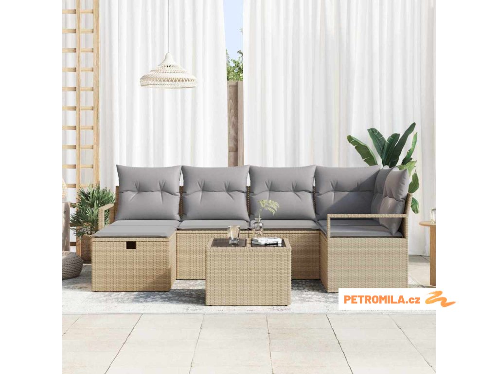 Sada zahradních pohovek s polštářem 7 pcs Béžová Poly ratan
