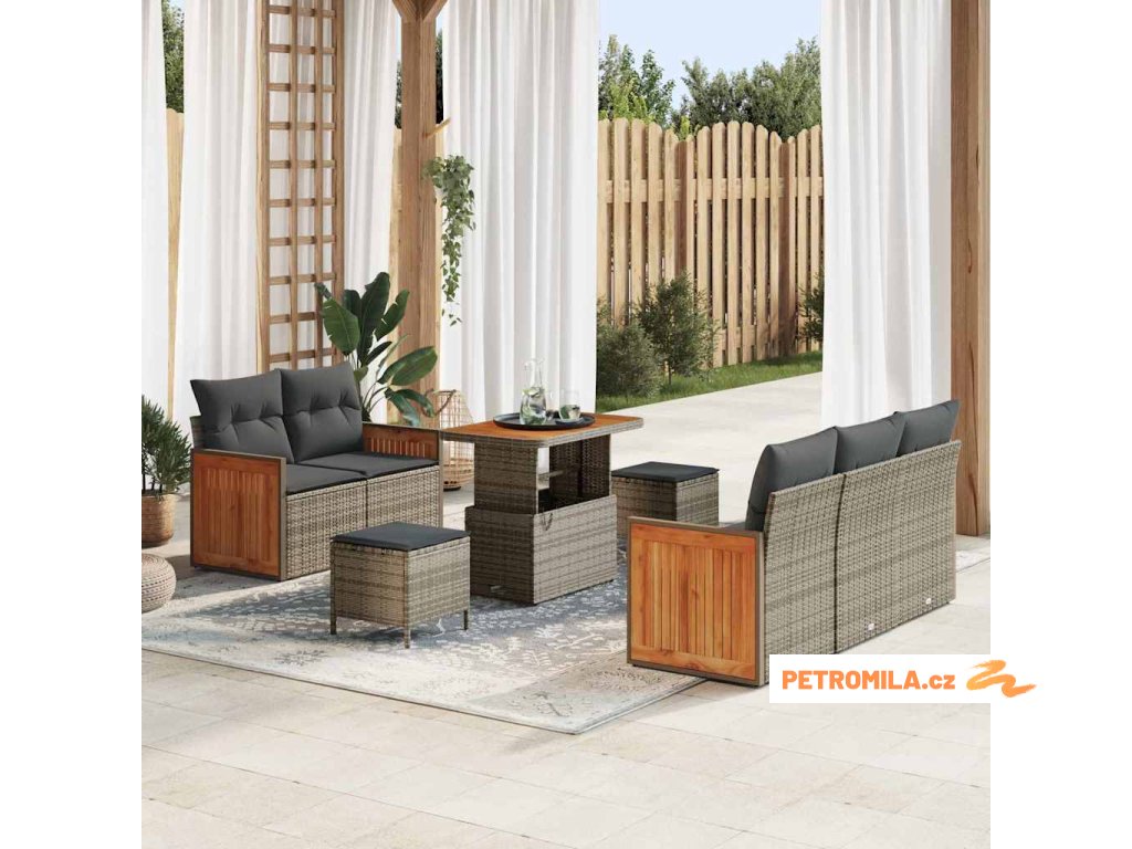 Tahle moderní zahradní pohovková sada ti nabízí stylové sezení pro všechny, kdo milují pobyt venku a chtějí do svého prostoru vnést trochu elegance a praktičnosti. S jednoduchými liniemi a minimalistickým nádechem je tato sada super pro venkovní setkání, lenošení u bazénu nebo odpočinek po dlouhém dni. Je vyrobená z pevných materiálů jako je polyratan, ocel a dřevo, takže si poradí s každým počasím.