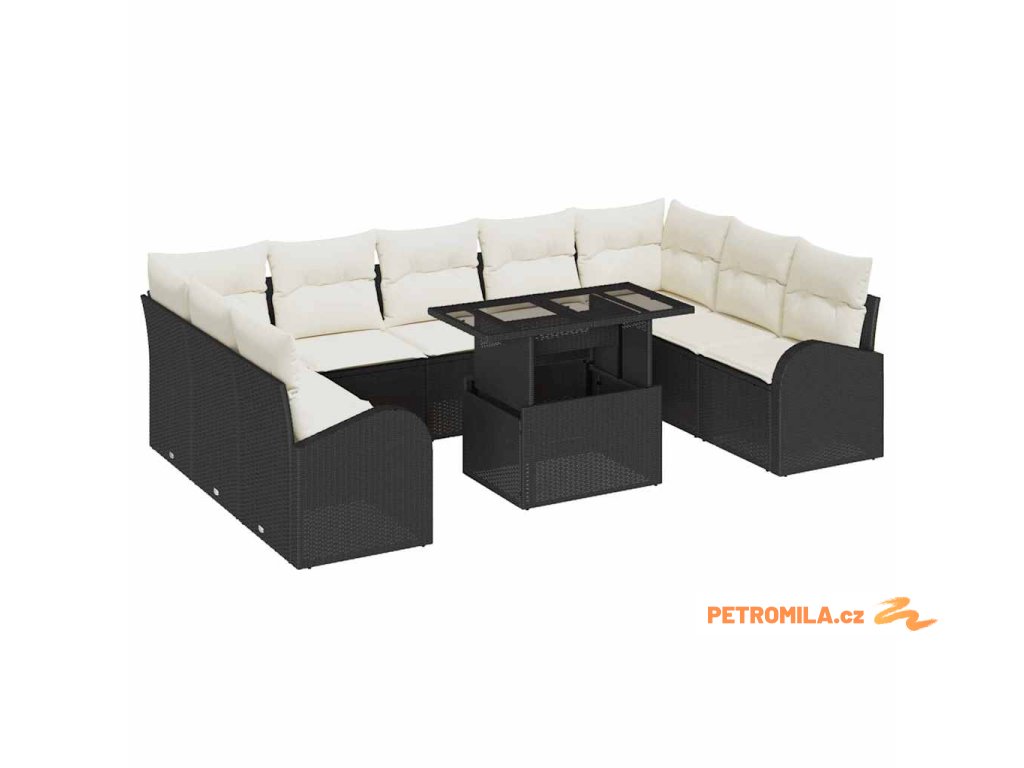 Sada zahradních pohovek s úložištěm 10 pcs Černá Poly ratan