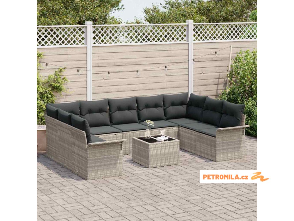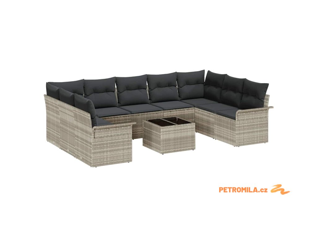 Sada zahradních pohovek s úložištěm 10 pcs Šedá polyratan