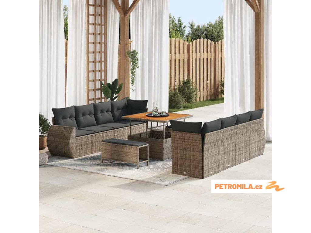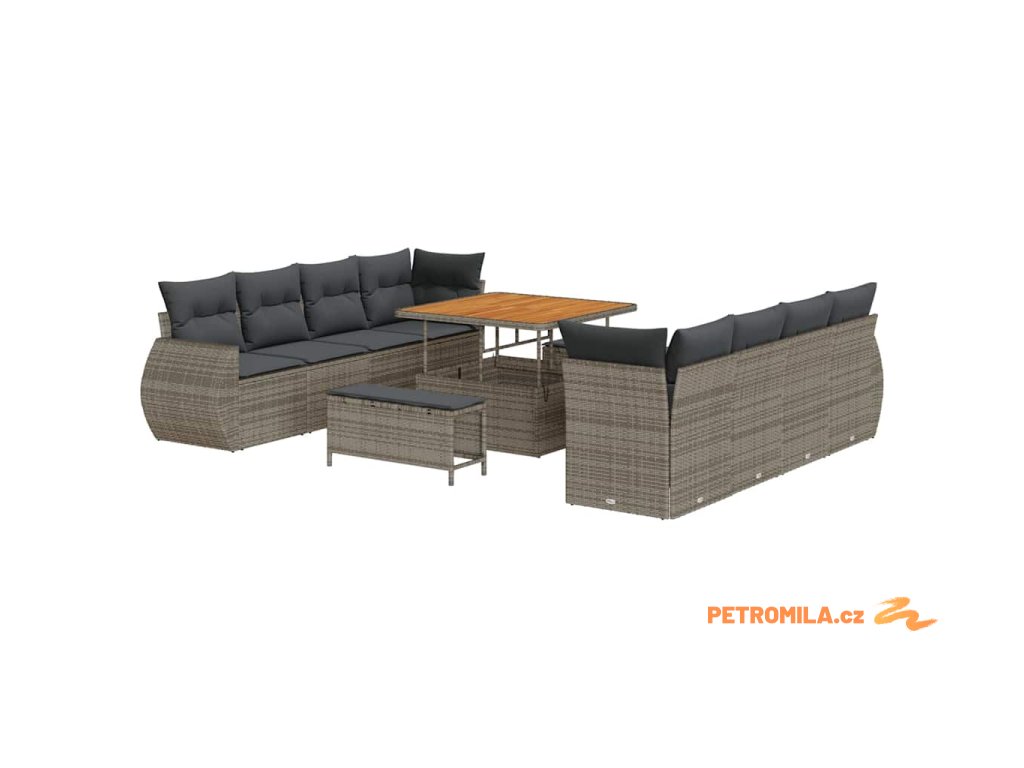 Sada zahradních pohovek s úložištěm 11 pcs Šedá Poly ratan