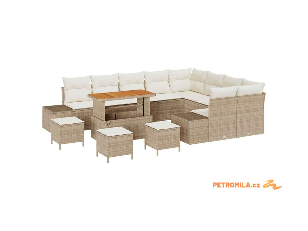 Sada zahradních pohovek s úložištěm 13 pcs Béžová Poly ratan