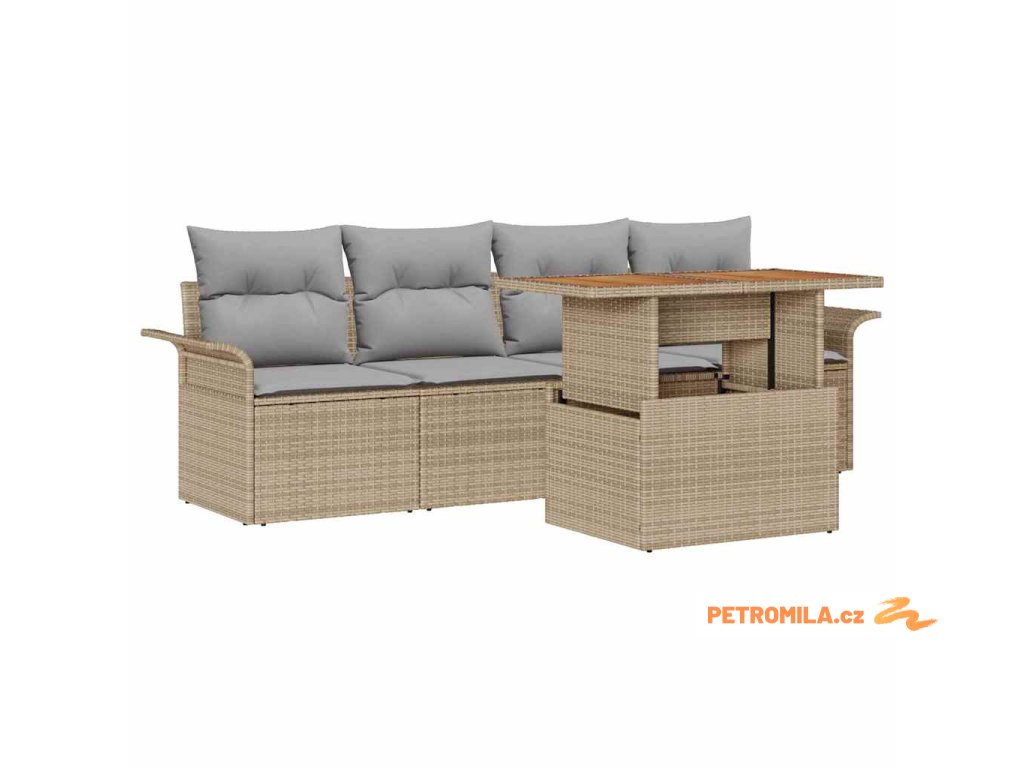 Sada zahradních pohovek s úložištěm 5 pcs Béžová Poly ratan