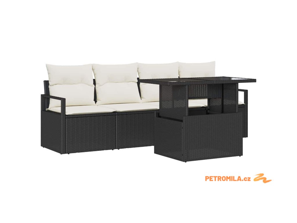 Sada zahradních pohovek s úložištěm 5 pcs Černá Poly ratan