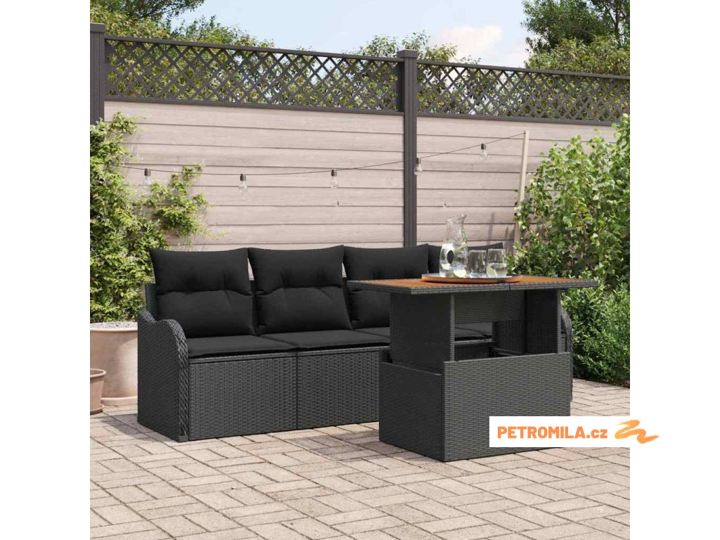 Sada zahradních pohovek s úložištěm 5 pcs Černá polyratan
