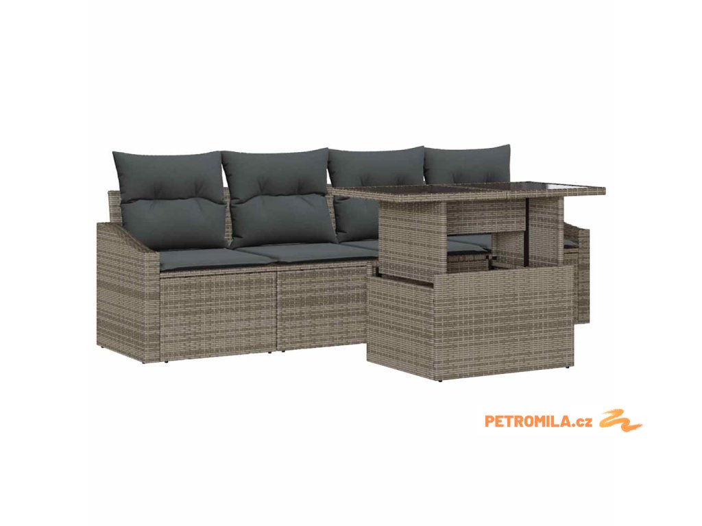 Sada zahradních pohovek s úložištěm 5 pcs Šedá Poly ratan