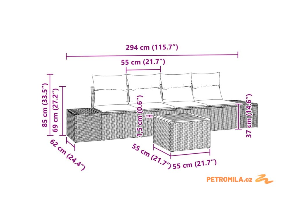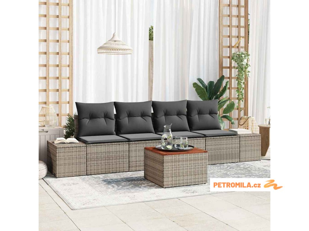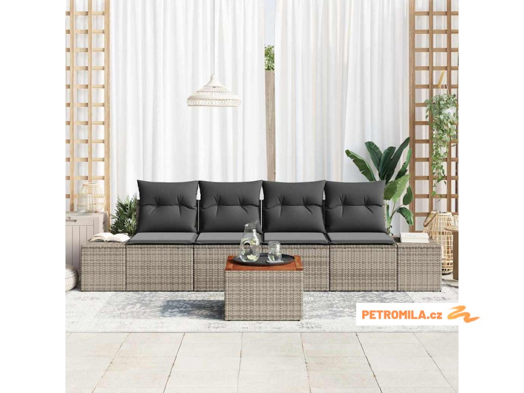 Sada zahradních pohovek s úložištěm 5 pcs Šedá polyratan