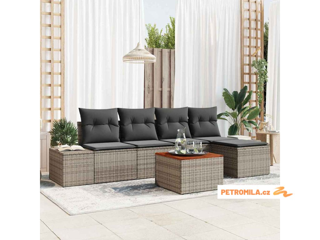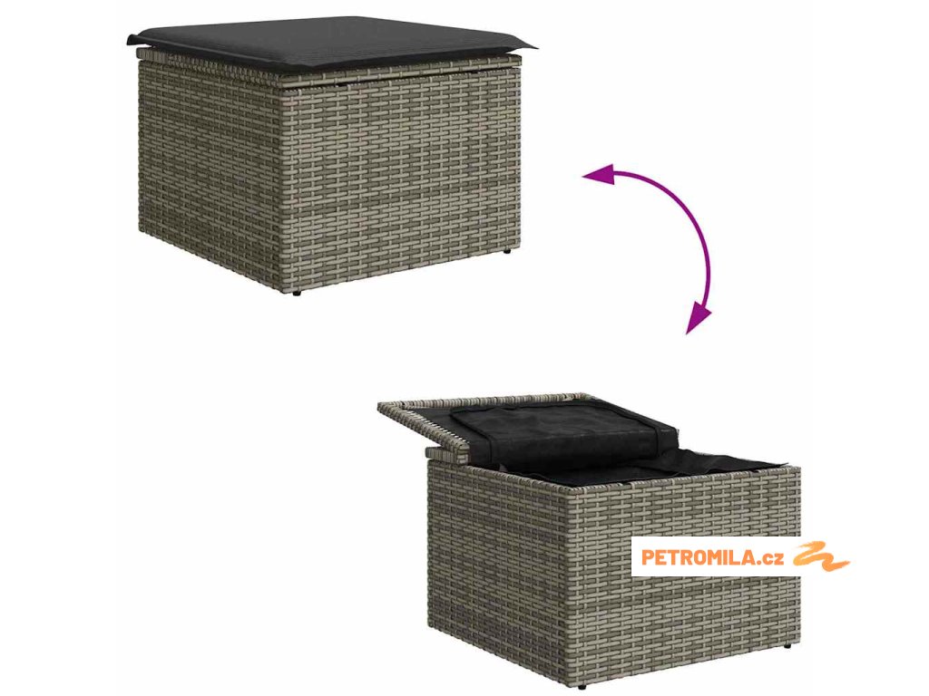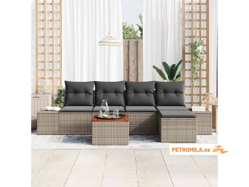 Sada zahradních pohovek s úložištěm 6 pcs Šedá polyratan