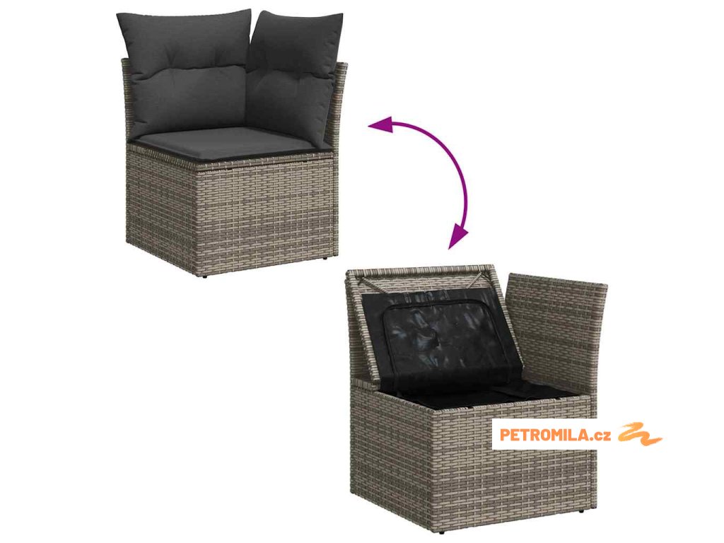 Sada zahradních pohovek s úložištěm 6 pcs Šedá polyratan