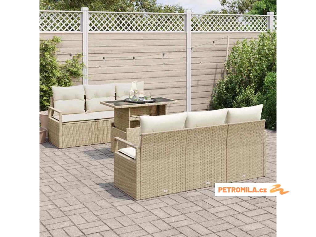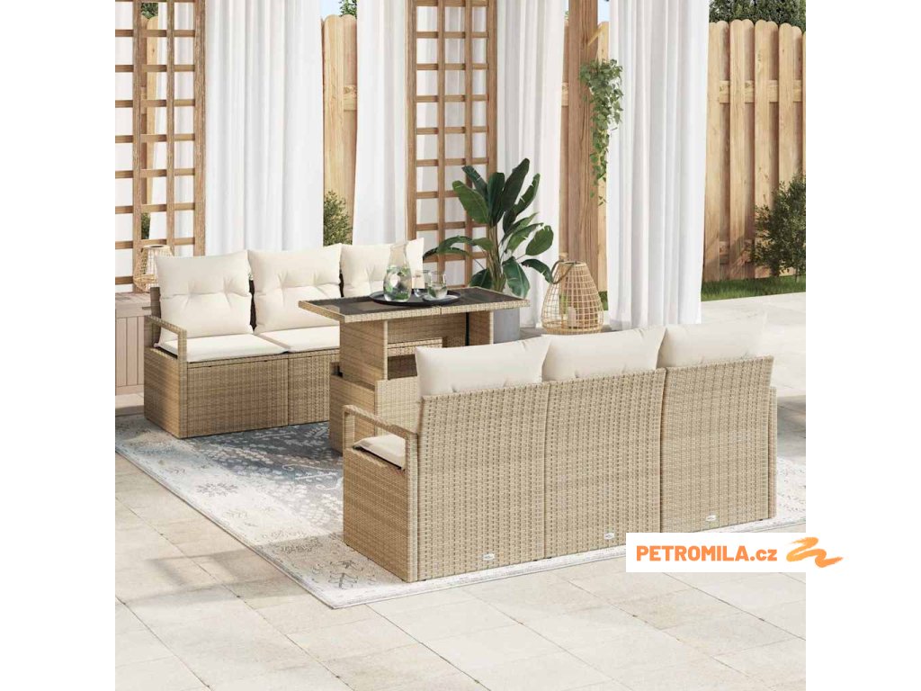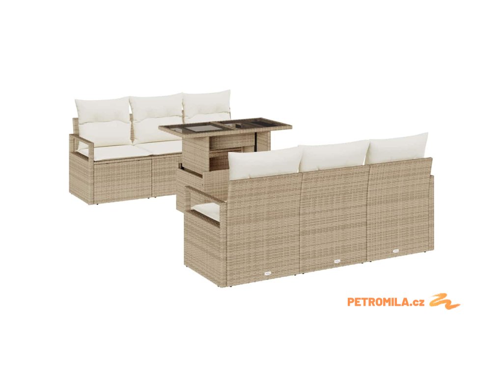 Sada zahradních pohovek s úložištěm 7 pcs Béžová polyratan