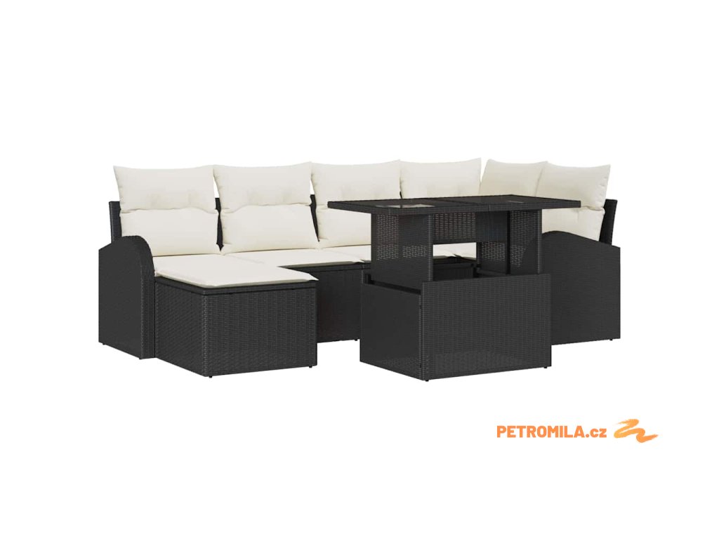 Sada zahradních pohovek s úložištěm 7 pcs Černá Poly ratan