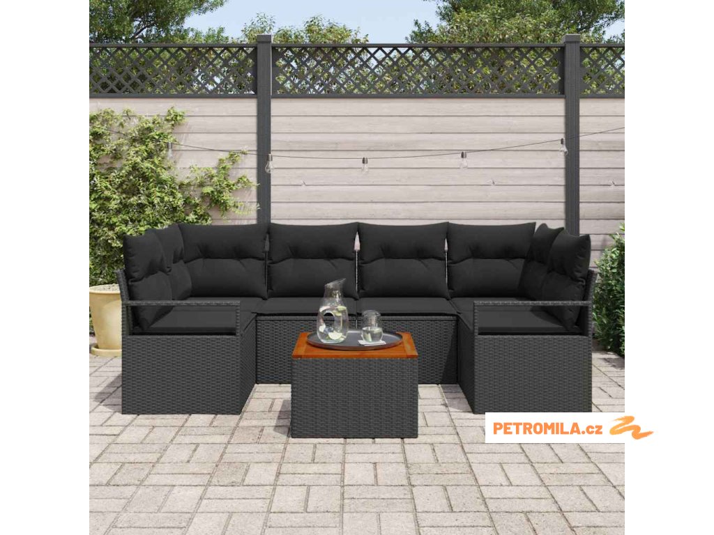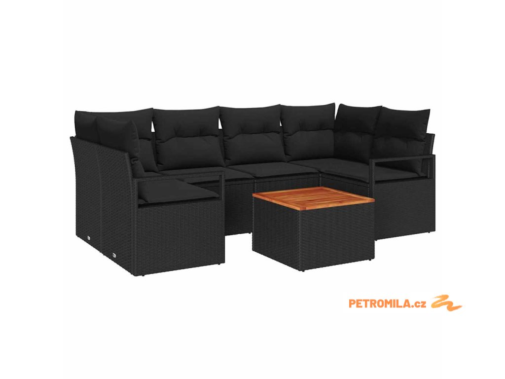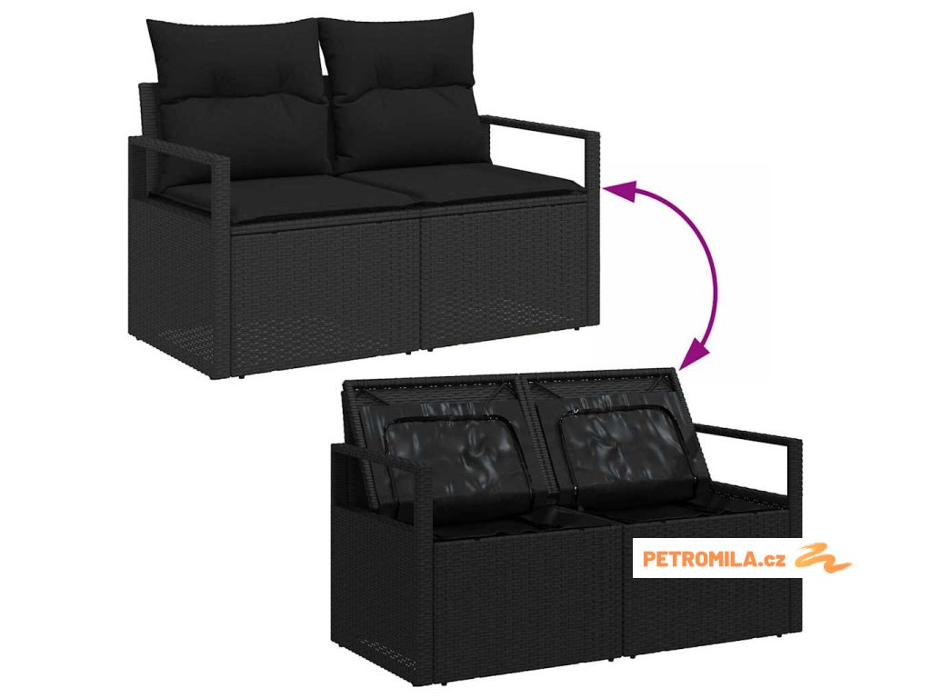 Sada zahradních pohovek s úložištěm 7 pcs Černá polyratan