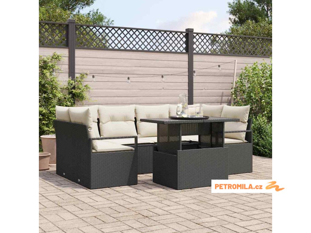 Sada zahradních pohovek s úložištěm 7 pcs Černá polyratan