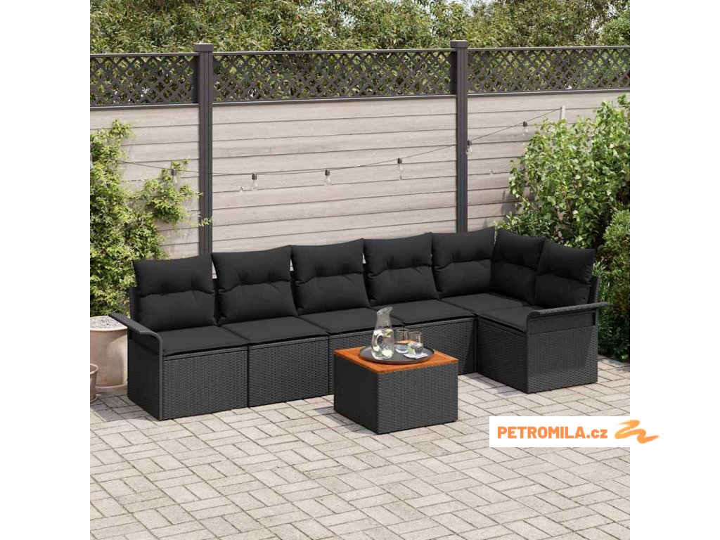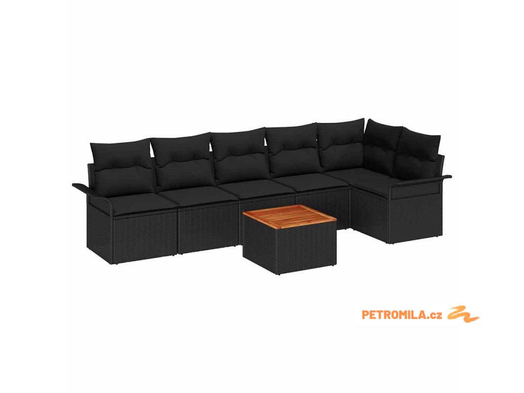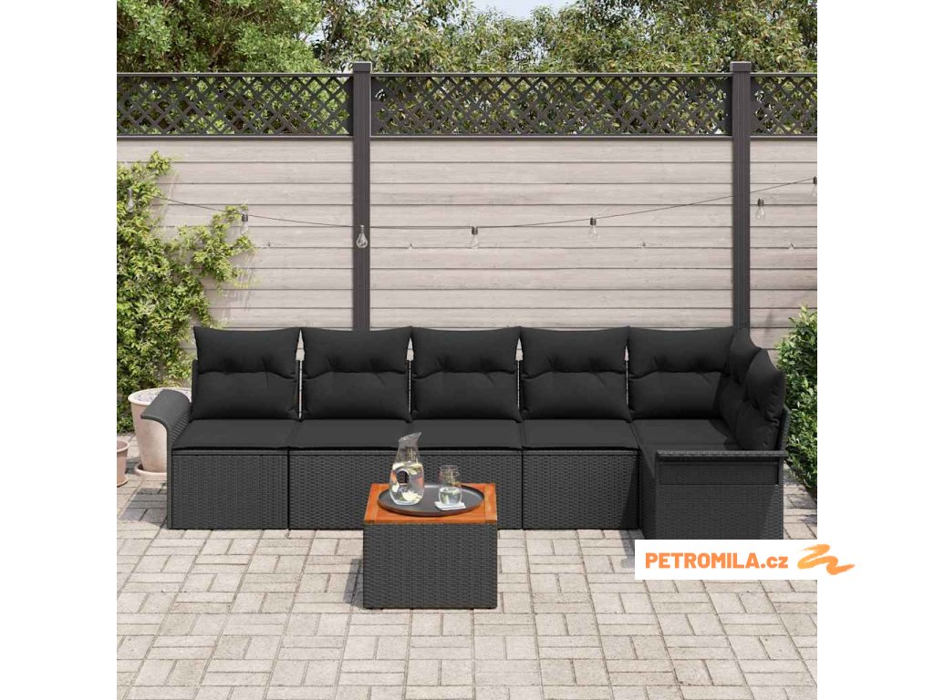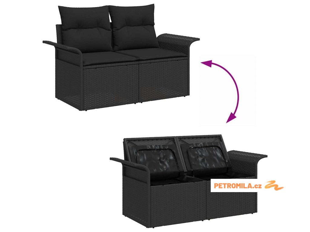 Sada zahradních pohovek s úložištěm 7 pcs Černá polyratan