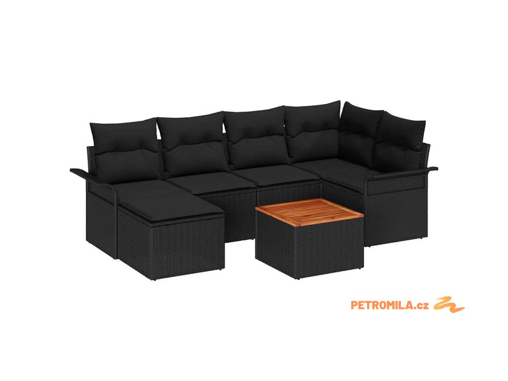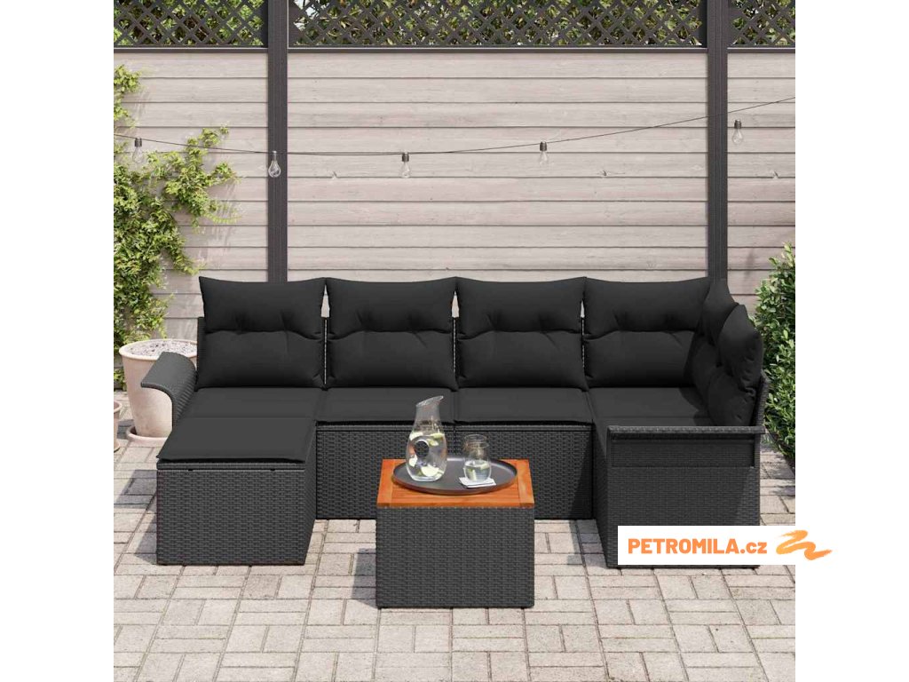 Sada zahradních pohovek s úložištěm 7 pcs Černá polyratan