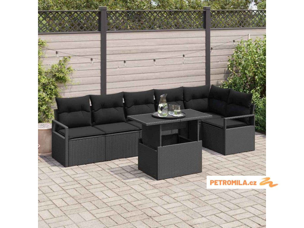 Sada zahradních pohovek s úložištěm 7 pcs Černá polyratan