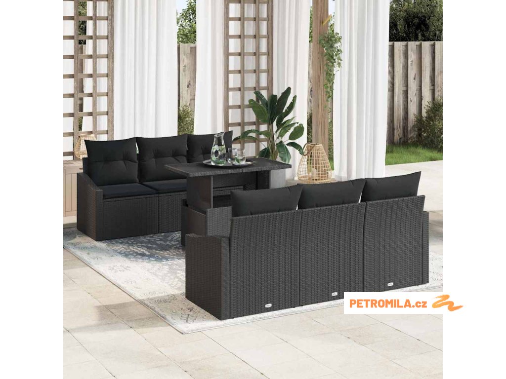 Sada zahradních pohovek s úložištěm 7 pcs Černá polyratan
