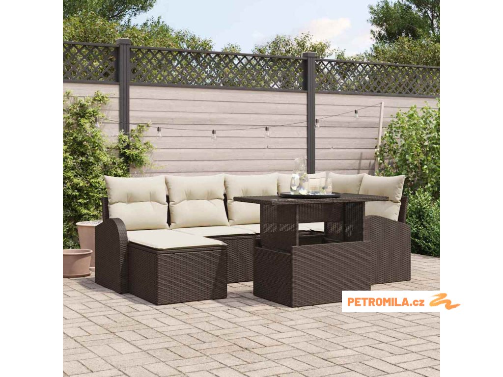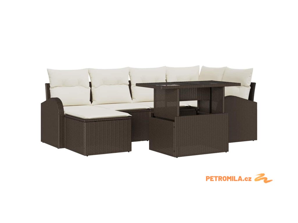 Sada zahradních pohovek s úložištěm 7 pcs Hnědá Poly ratan
