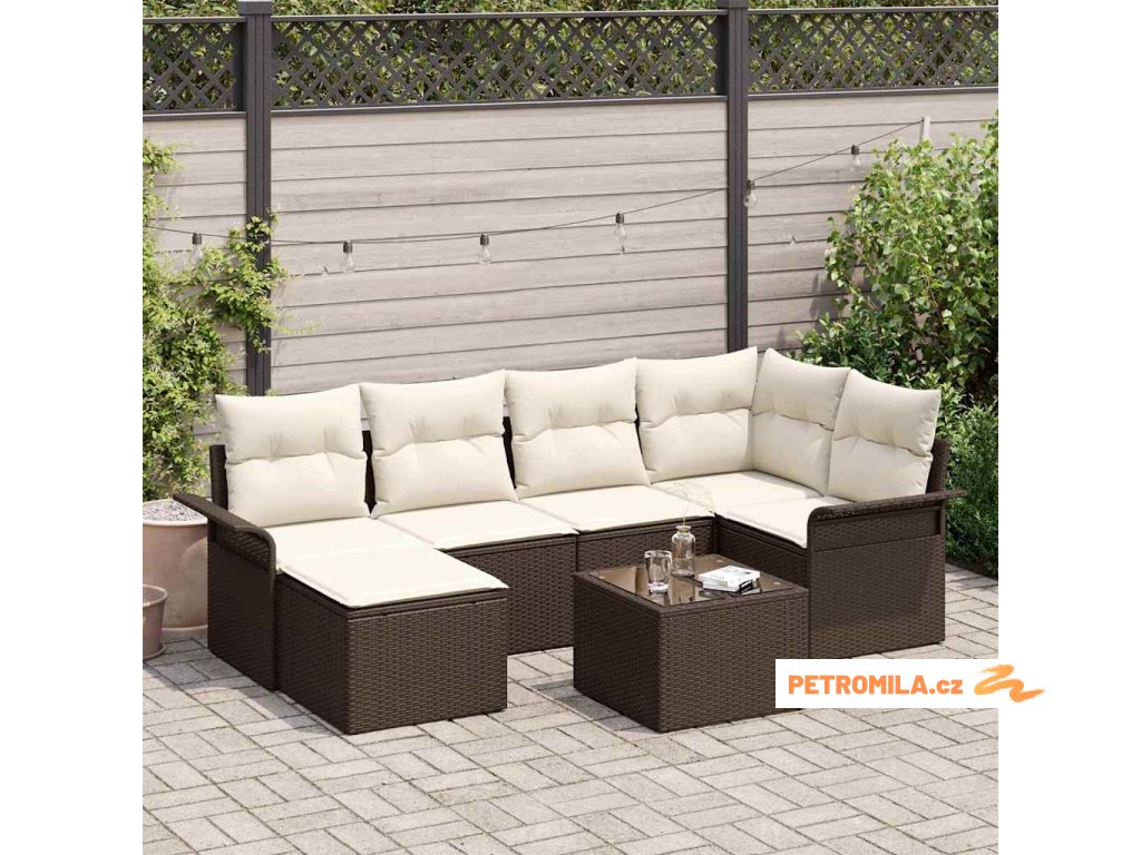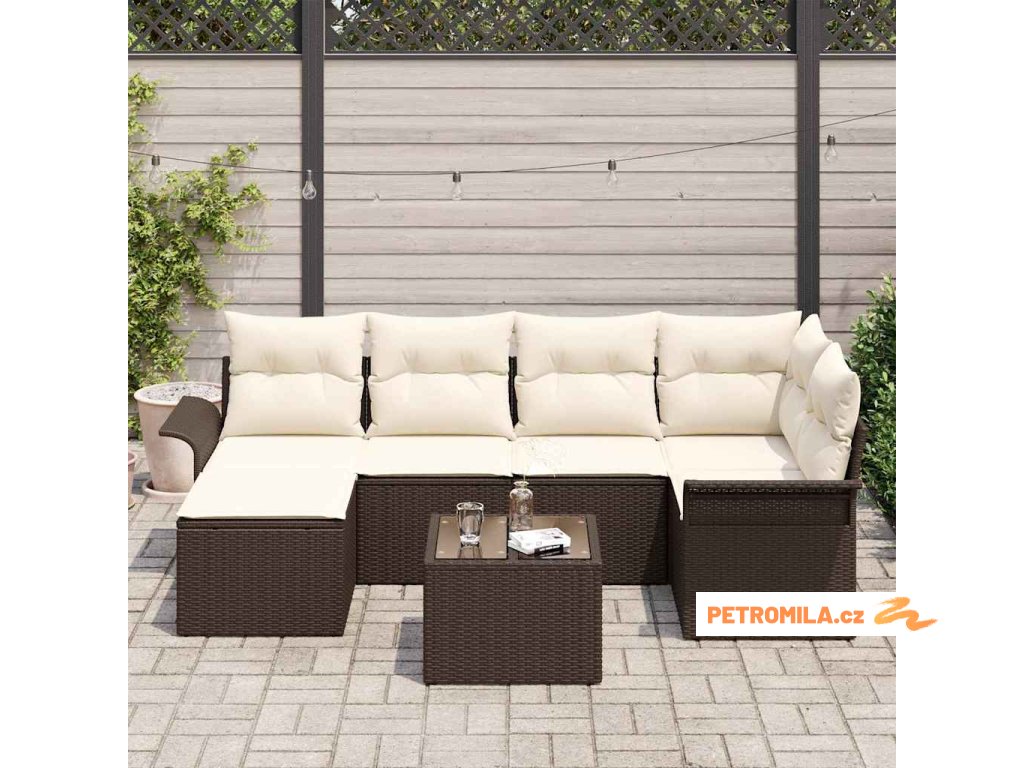 Sada zahradních pohovek s úložištěm 7 pcs Hnědá polyratan