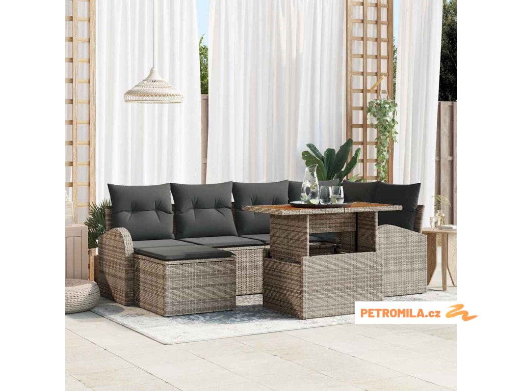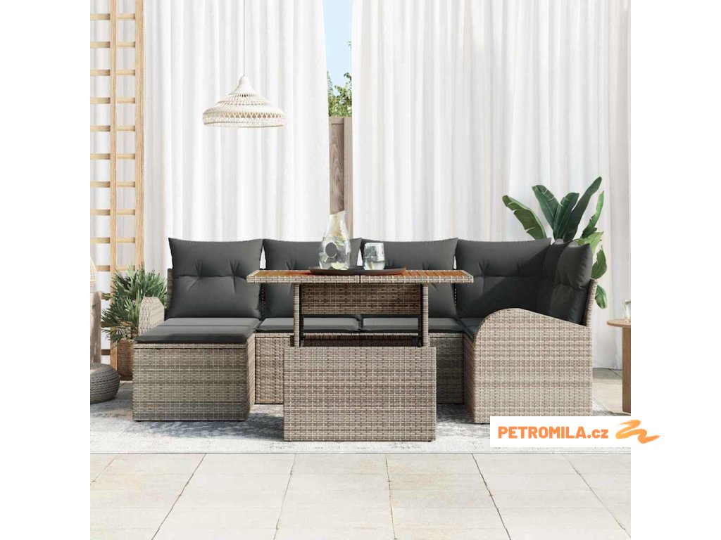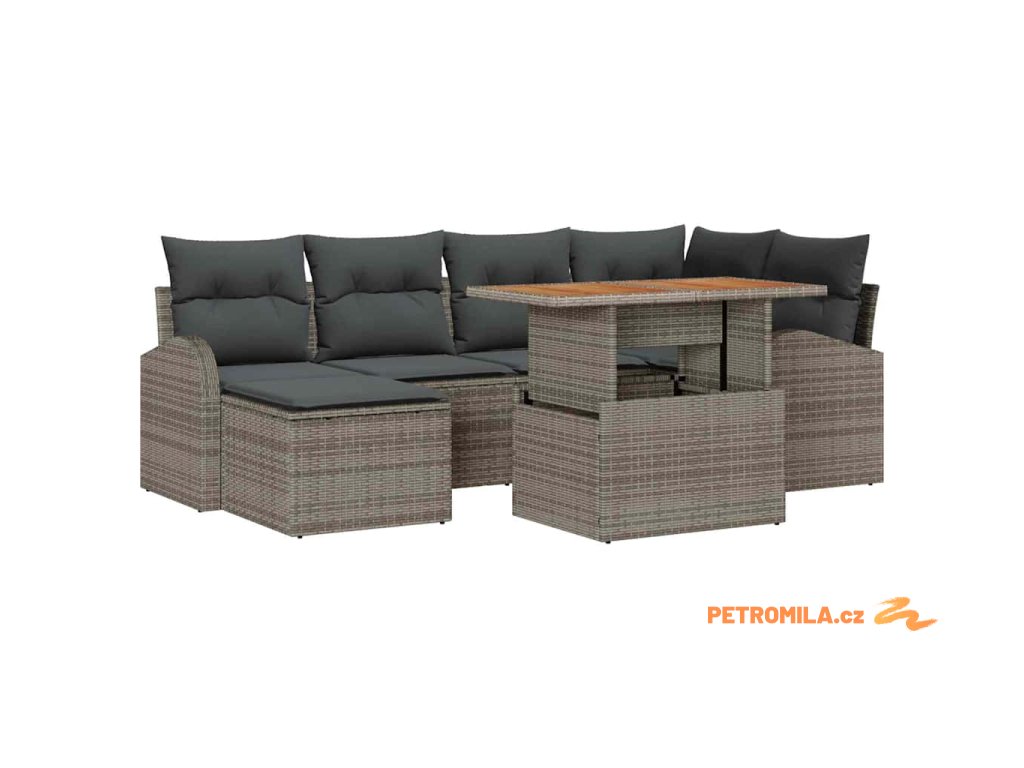 Sada zahradních pohovek s úložištěm 7 pcs Šedá Poly ratan