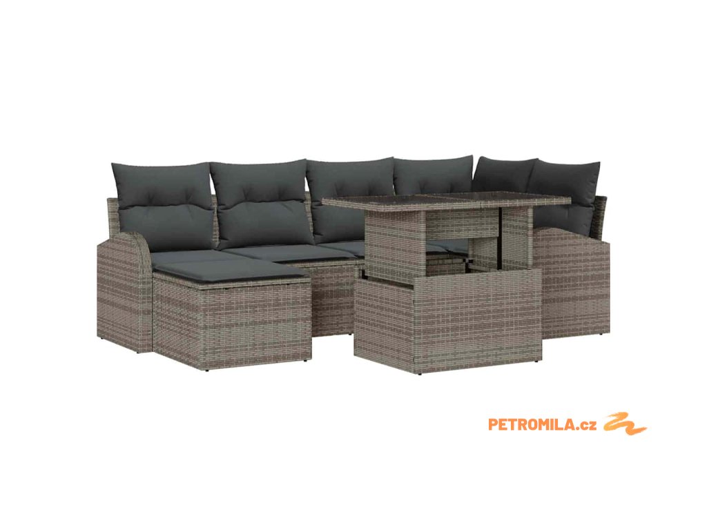 Sada zahradních pohovek s úložištěm 7 pcs Šedá Poly ratan