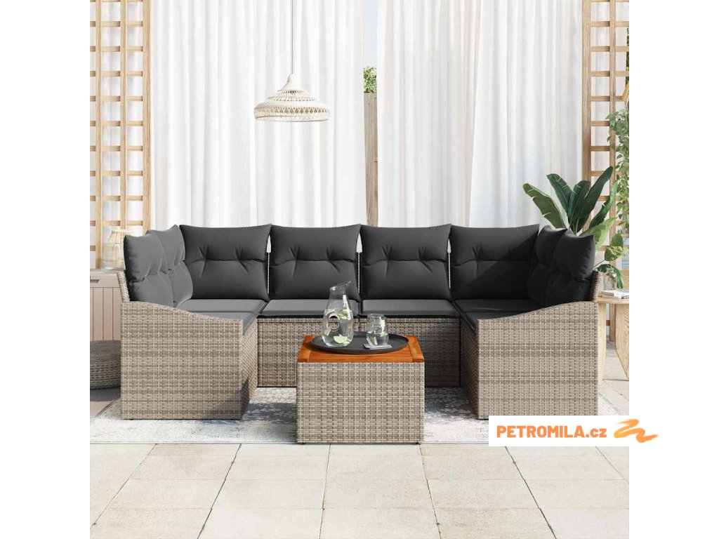 7dílný zahradní jídelní set s poduškami světle šedý polyratan
