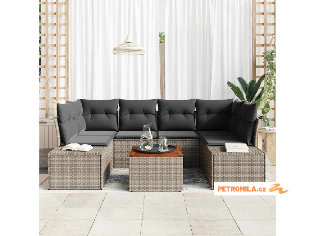 Sada zahradních pohovek s úložištěm 7 pcs Šedá polyratan
